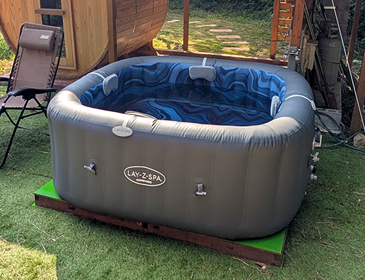サウナのすぐそばに専用の水風呂を完備。清涼な水で身体をクールダウンし、爽快感を味わえます。ご利用の際は、事前にご自身で水を張っていただく必要があります。自然の中でサウナと水風呂の交互浴を楽しみ、極上のリラクゼーションを体験してください。
